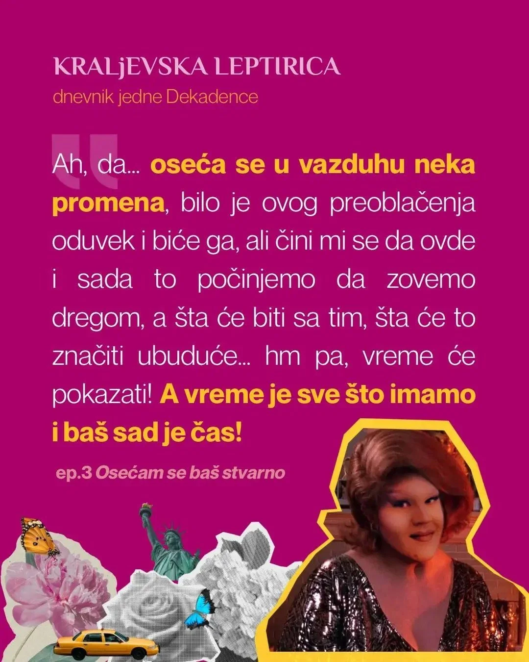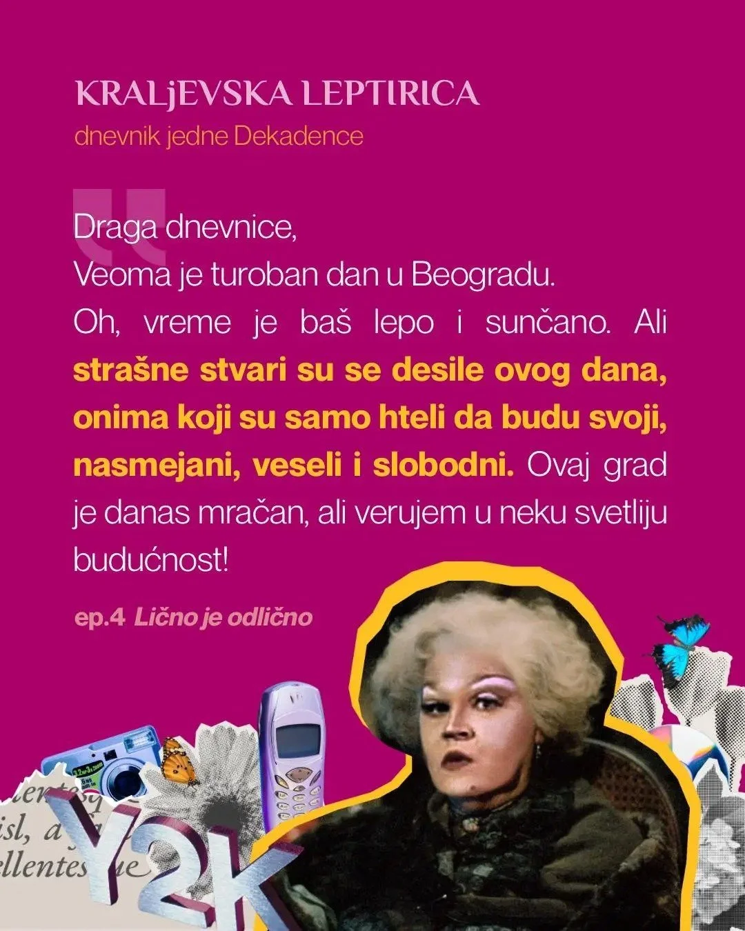 Majka Dekadenca piše iz Beograda 2001. o dreg pionirkama, Zedu Zeldiću Zedu, Viva la Divi, novim kraljicama i kraljevima, svom majčinstvu i verovanju u svetliju budućnost, čak i kad Balkan obaviju senke. Sutra – možda ipak bude bolje!