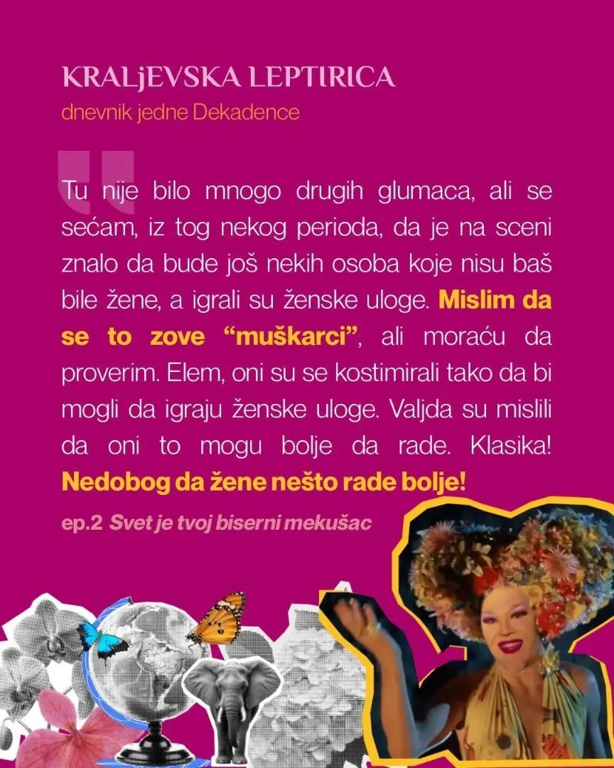 Na dan premijere fantastične predstave koju je pripremala, Dekadenca se prisetila Zagreba, Beograda, Dorćola, kabarea, lipsinka i svih dreg sestrinstava – spremna da opet zasija pred publikom.